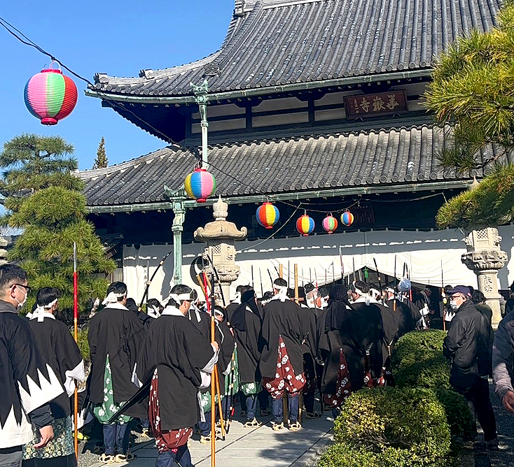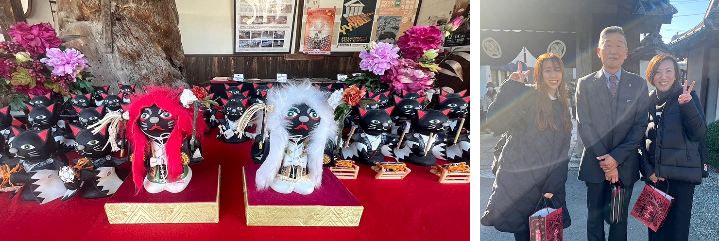 まずは浅野家の菩提寺である花岳寺に参拝します。花岳寺には、義士のお寺として赤穂義士の遺品などが展示されています。義士墓地では、たくさんの参拝者が焼香をする「義士追慕法要」が行われていました。本堂に展示された黒猫義士も、討入り時の黒装束でとても可愛かったです。黒猫義士の服装は義士祭バージョンの他、ル・ポン音楽祭バージョンや浅野内匠頭の命日バージョンなど全部で5パターンあり、それぞれのイベント時に登場して本堂の名物になっています。