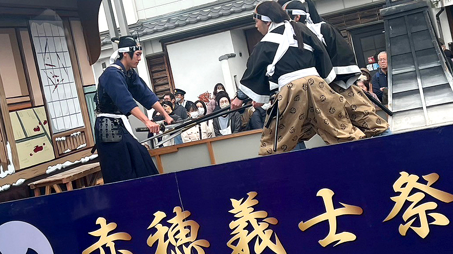 赤穂義士祭のメインは忠臣蔵パレード。赤穂義士たちが本懐を遂げるまでの物語が様々なパレードで繰り広げられます。